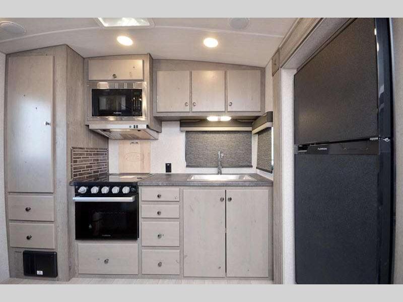Each model includes a cathedral arched ceiling, roller bearing drawer glides, LED lighting, plus ample storage space for your personal belongings. Outside, you'll appreciate an exterior shower to wash off camp gear, along with a 12V LED awning with adjustable pitch for an inviting outdoor living space. Each model also includes the SolX 4-400 Watt Solar Package for off-grid capabilities!